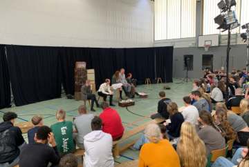 Nach zwei Aufführungen gingen wir mit etwa 200 Schüler:innen jeweils in intensive Nachgespräche über die Geschichte, den Antisemitismus und unsere Demokratie
