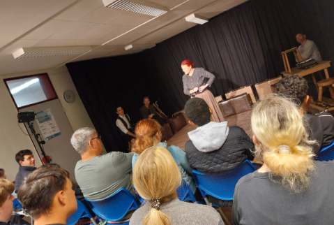 Nach zwei Aufführungen gingen wir mit etwa 200 Schüler:innen jeweils in intensive Nachgespräche über die Geschichte, den Antisemitismus und unsere Demokratie
